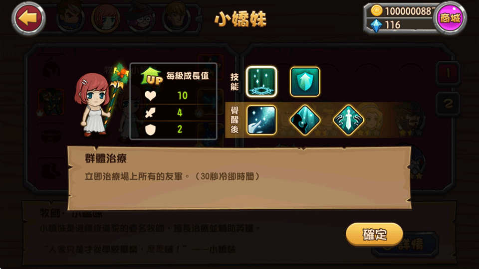 小娇妹是边疆修道院的壹名牧师,擅长治疗并辅助英雄。
