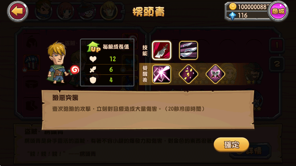 楞头青是身手灵活的盗贼,有著不容小觑的爆发力和伤害,对金色的东西很著迷。