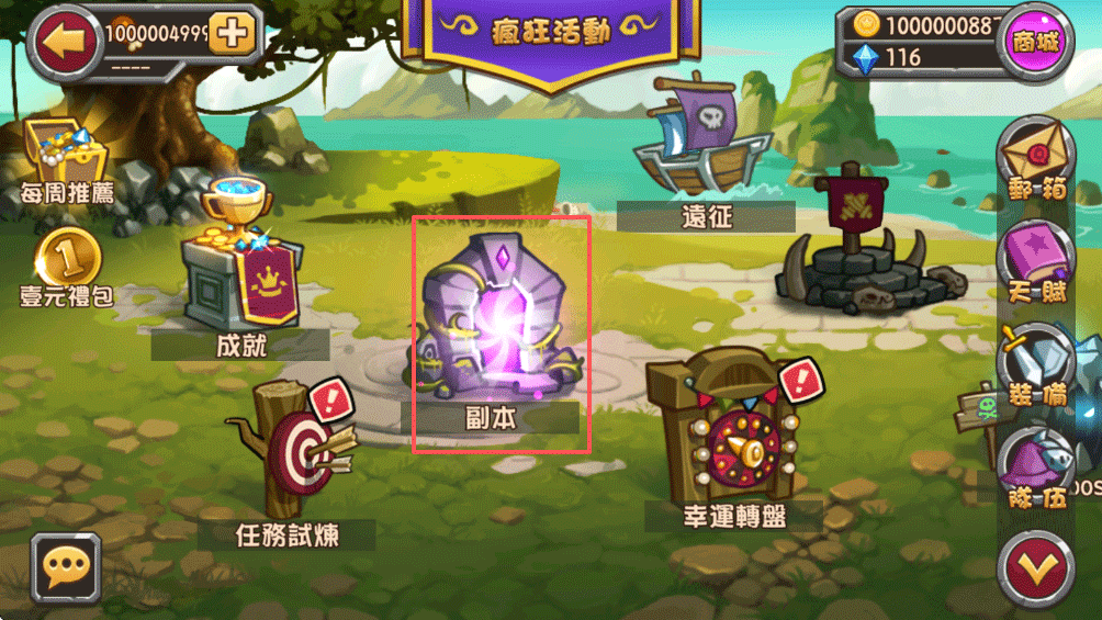 1、在游戏界面内选择你要挑战的模式,如副本模式、远征模式、任务试炼