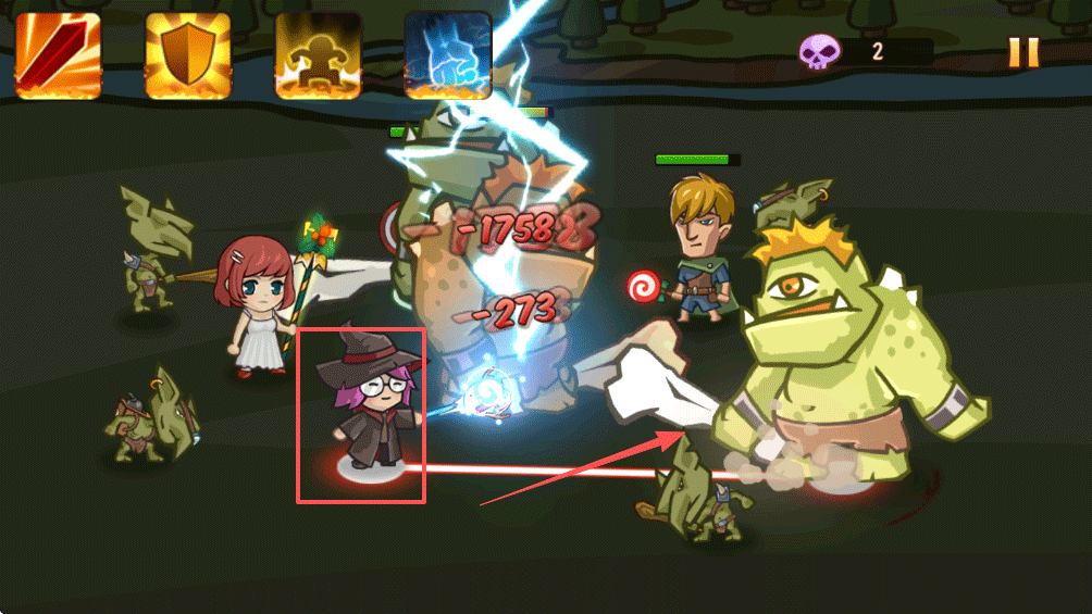 3、游戏中你将通过点击英雄并指向某个敌人,英雄就会对指定敌人进行攻击