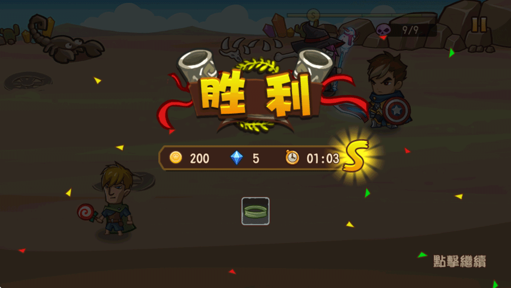 4、直到将所有敌人消灭后即可获得游戏胜利和奖励