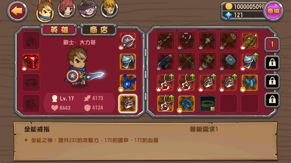 5、获得的装备可以穿戴在英雄身上提升他的战斗力、防御力