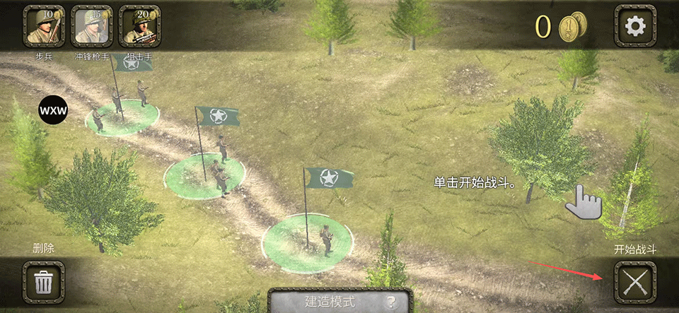 7、点击进攻士兵会自动展开战斗,你也可以随意点击一个士兵切换为第一时间,并自由操控角色进行战斗