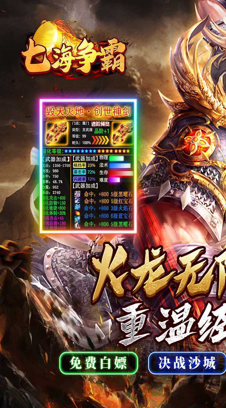 《七海争霸》震撼上线!经典火龙玩法搭配超值福利,让你体验原汁原味的传奇热血!全屏拾取+自动回收免费送,挂机也能轻松爆装;海量钻石、仙元、无限红包签到即领,零氪也能爽快发育;更有多重福利如实物回收、在线奖励等,散人逆袭不是梦!火龙专属群切、激情攻沙,带你重回传奇黄金时代!现在登录还送专属福利,兄弟集结,沙城再战,等你来霸服!