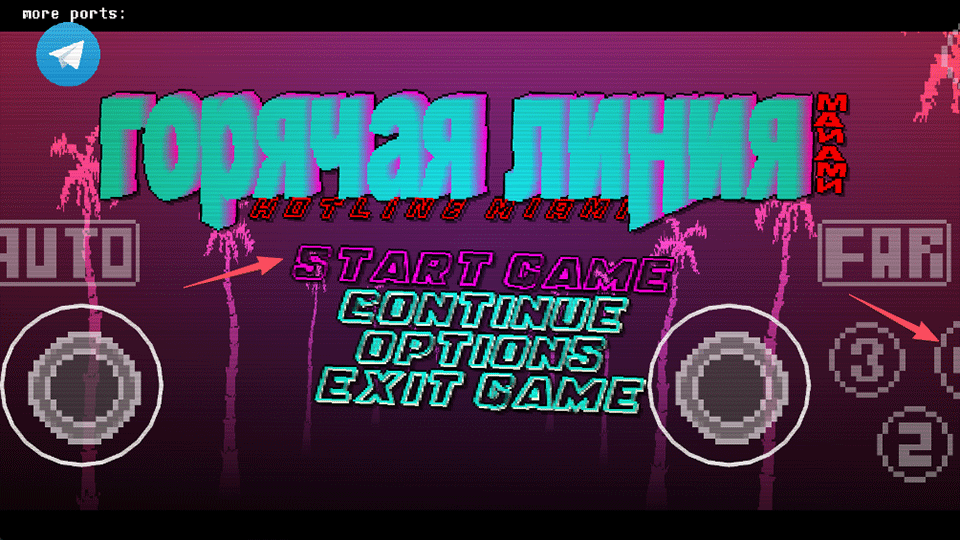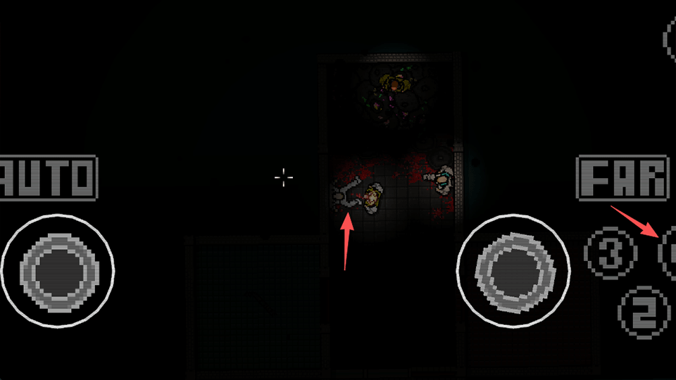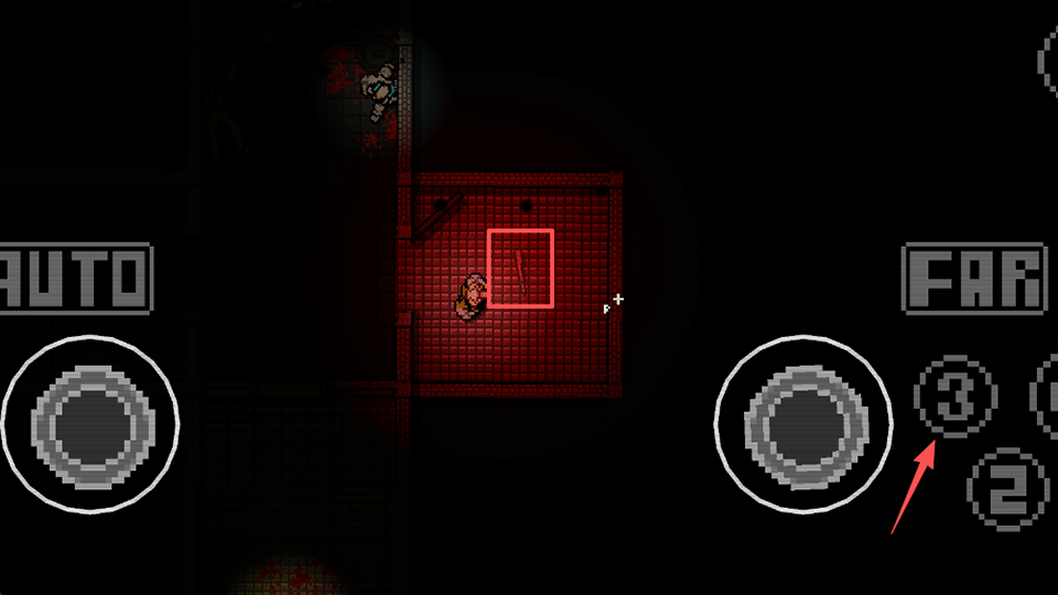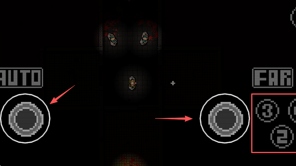 3、迈阿密热线虚拟摇杆手机版游戏中你将通过左边摇杆控制角色的移动,右边摇杆为方向,数字1按钮为攻击和确认键,3为拾取和丢弃