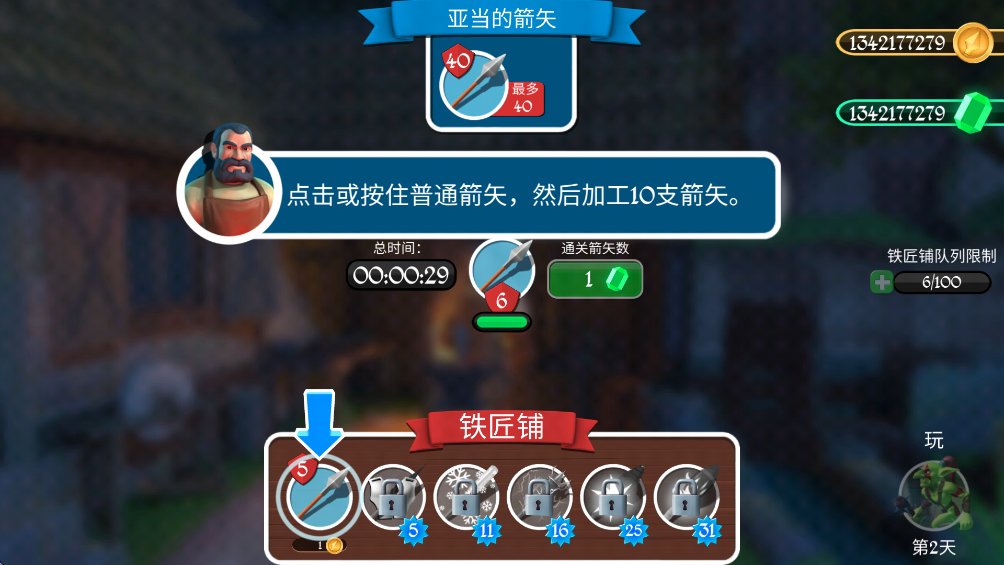 6、击杀敌人会消耗弓箭,当弓箭数量不足时,可以在铁匠铺内打造更多弓箭