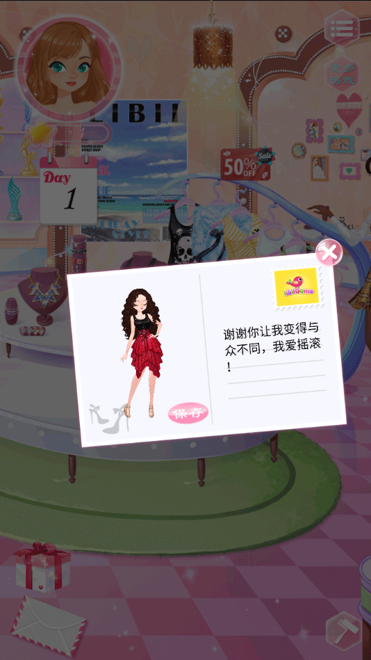 6、客人满意后还会给你信件,你可以点击保存按键将该装扮张贴在店内