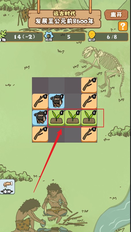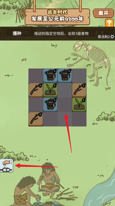 5、在远古时代,玩家自带【播种】技能。长按技能图标并拖动到空地格即可使用。