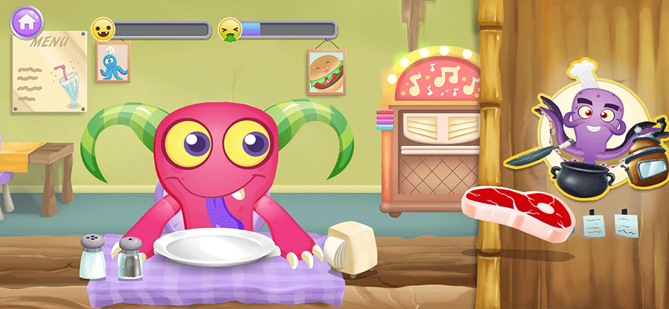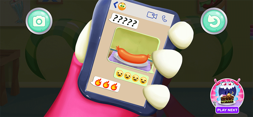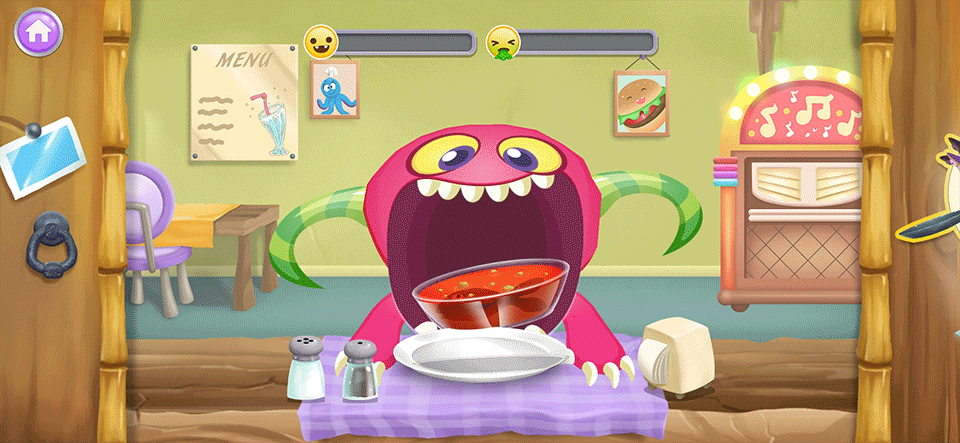 7、当上方满意或不满意的进度条满时,喂食结束,并收到来自怪物的好评或差评