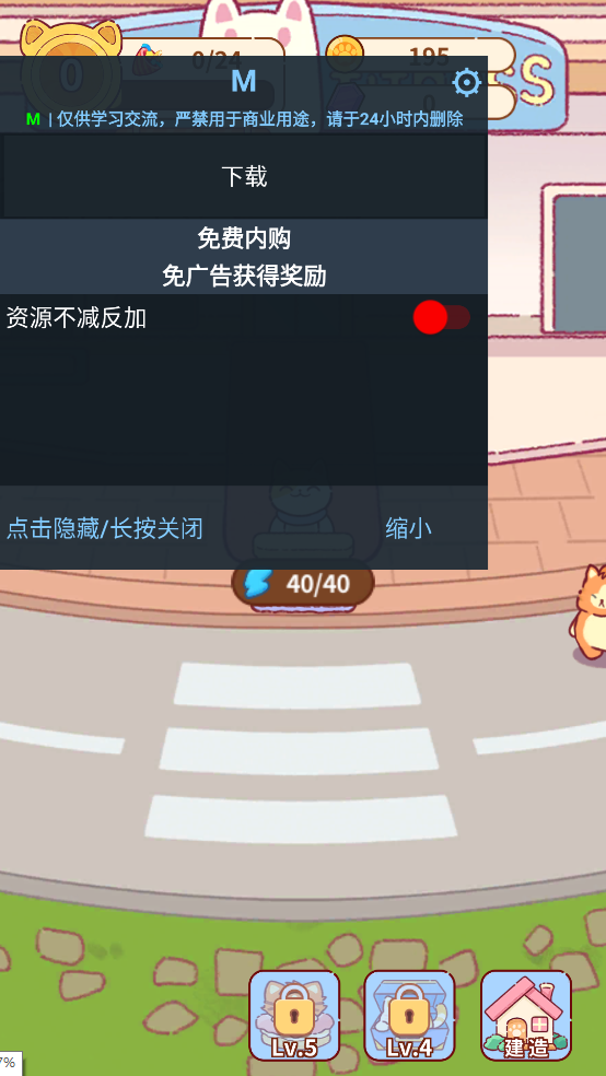 本站提供的是猫咪健身房破解版,游戏内解锁免广告会获得奖励和免费内购,并且资源不减反加让你拥有无限金币。