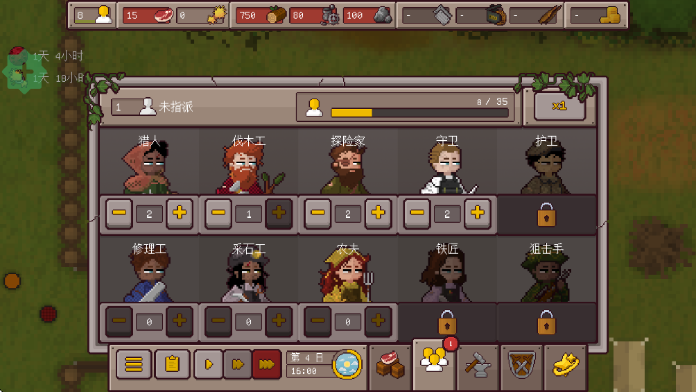 从超过10种工作岗位中,为每一位幸存者分配合适的岗位,然后观察他们投入工作!