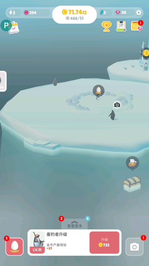 另外,岛屿的设施和规模也会随着养成等级的进步而进步,玩家可以扩建小岛、升级装饰品、建造更多的娱乐和生活设施来让企鹅们生活在一个更美丽的岛上,快来领养你的企鹅吧。