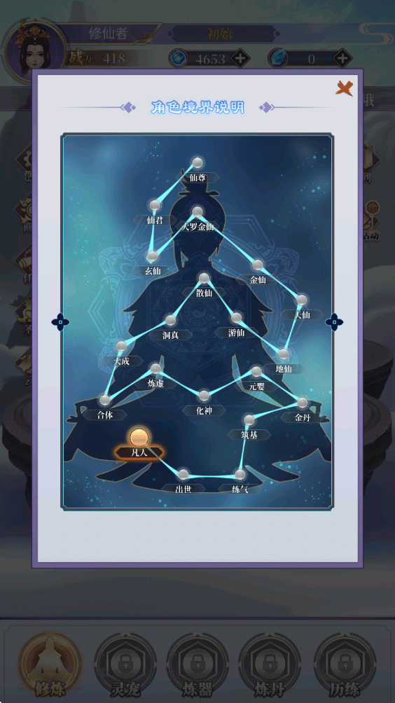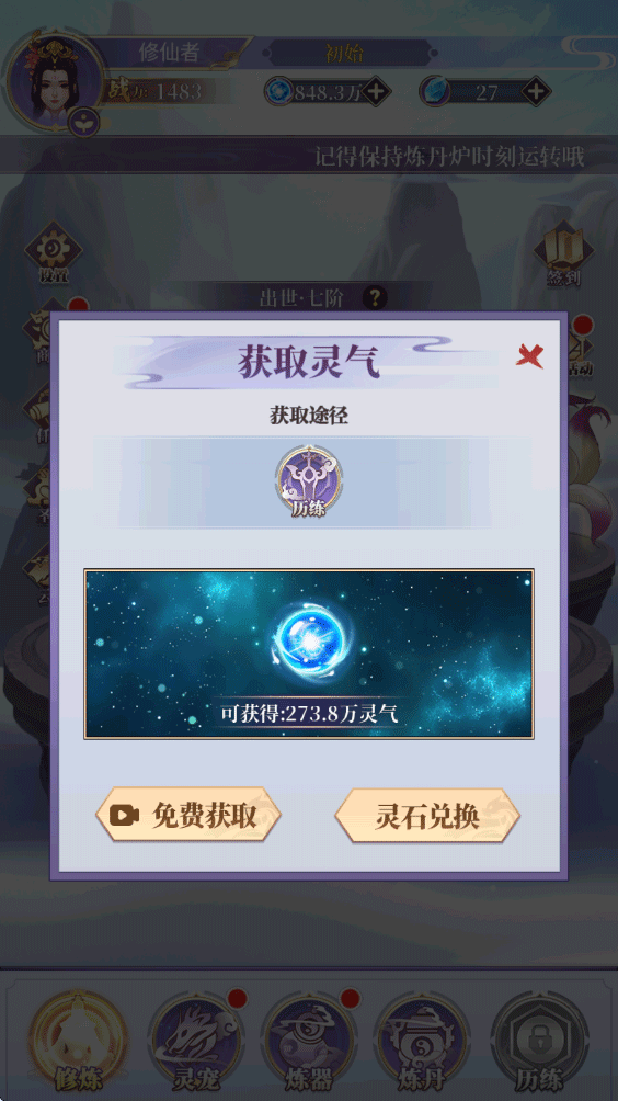 6、另外游戏内还有灵宠、炼器、炼丹、历练玩法,每个玩法都能对你的修炼提供帮助