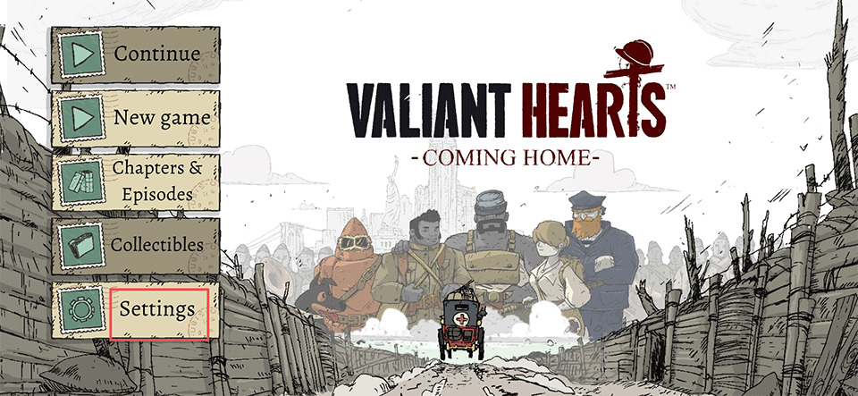 勇敢的心回家又名Valiant Hearts、勇敢的心归乡,这是一款一战题材的动作冒险类游戏。该游戏以第一次世界大战为背景,讲述了一个和平村庄里的两个兄弟的故事,他们每天耕种和放牧牲畜,享受着日常的快乐,而在某一天战争爆发了,两兄弟都参了军上了战场。而玩家将扮演弟弟的角色,在寻找哥哥的途中,救助伤者,并通过解决谜题、潜行等方式,在战争中生存,体验友情、爱情与牺牲。值得一提的是游戏采用UbiArt Framework引擎,拥有独特的手绘2D画面和动画风格,仿佛不是一个游戏而是一部精美的图像小说。