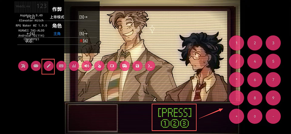 4、需要做出选择时要用到数字键盘,点击左边第三个图标可切换为数字键盘使用