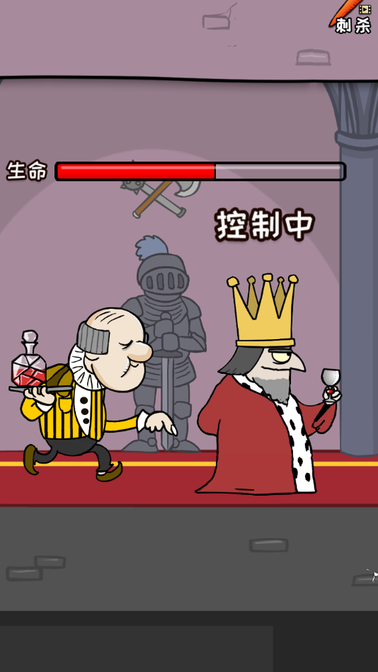 我要当国王是一款火爆全网络的魔性沙雕休闲逗比小游戏,游戏开局玩家将扮演刺客,需要在国王身后长按屏幕蓄力,待进度条满时发动致命一击,期间要敏锐观察国王回头动作,并及时松开屏幕规避被抓风险,失败会被投入大牢,成功刺杀则成为新国王。当玩家成为国王时,你需要在刺客举刀行刺瞬间点击屏幕回头抓捕刺客,被不同的刺客刺杀成功后会触发不同结局,如小丑击杀会触发王冠砸死大臣的特殊结局,被农民干掉则会引发起义推翻统治等各种脑洞大开的结局!