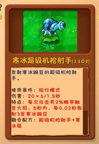 融合配方:超级机枪射手+寒冰菇