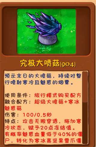 融合配方:超级大喷菇+寒冰魅惑菇
